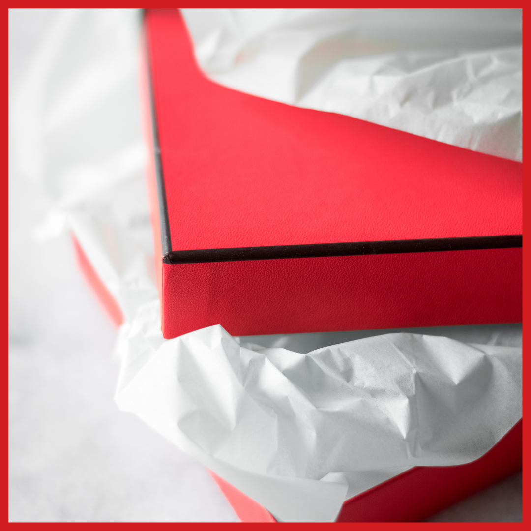 Each order will arrive in a white recycled branded box with a satin dustbag made from excess stock. Heel replacements inside a velvet envelope case. All accompanied by a shoe care insert and a thank you note printed on recycled paper with vegetable ink.